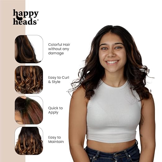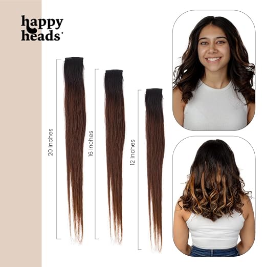 Happy Heads Clip in Color Streaks | Hair extension clips for women | Ombre Mocha Brown | 12 Inches | 100% Human coloured hair extensions strips for Women & Girls | Color Hair Strips for Hairstyling